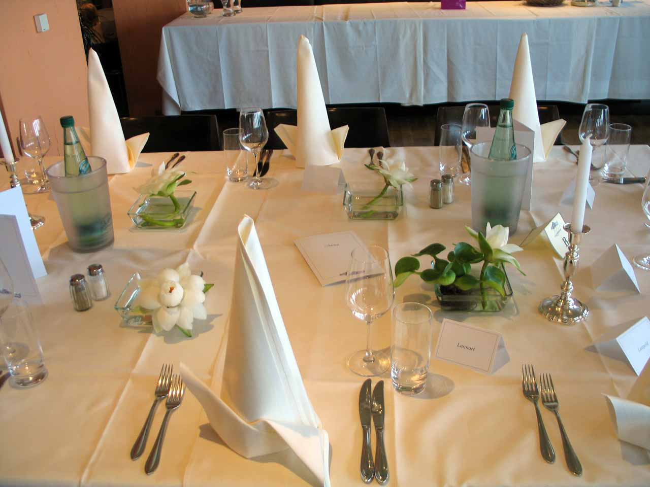 Unsere Leistungen umfassen die ganzheitliche Planung von Veranstaltungskonzepten sowie die stilvolle Gestaltung von Tisch- und Raumdekorationen.